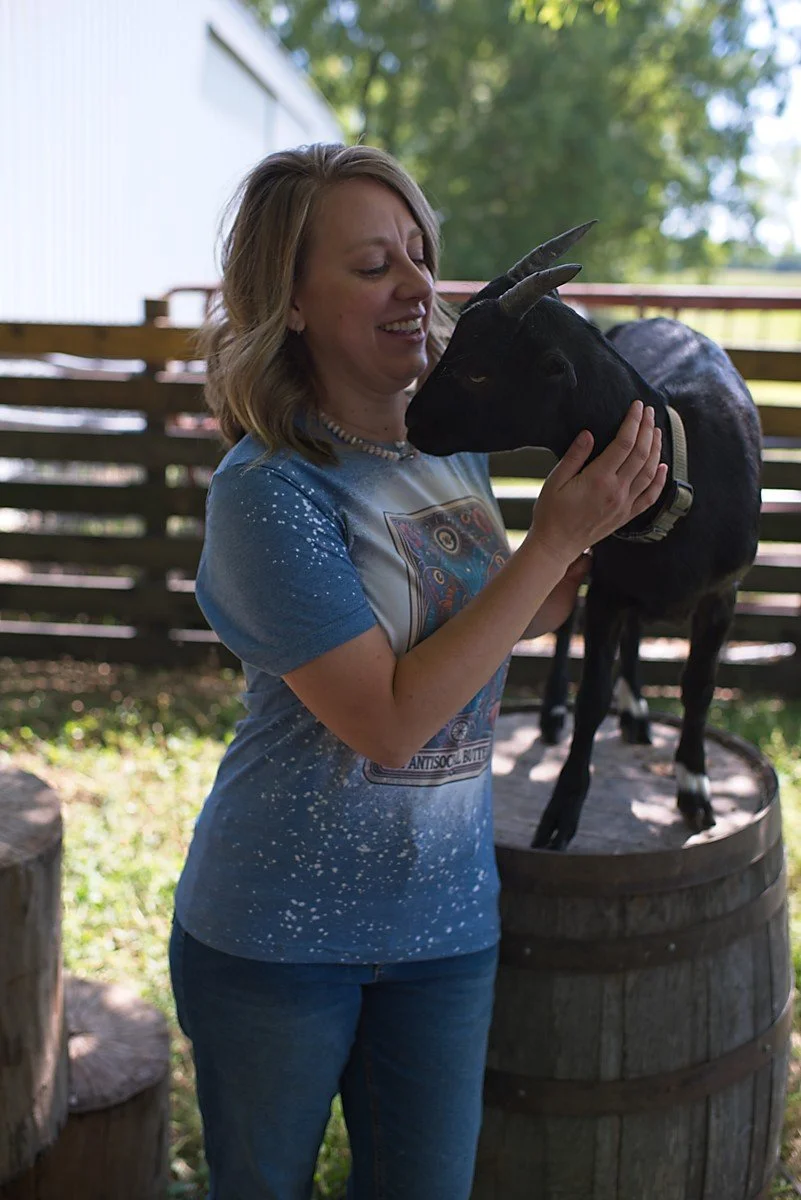 In 2021, a new chapter began with the establishment of her family's goat farm. Now residing in the Midwest after a move from the mountains, Ariel channels her passion into creating the highest quality goat milk soap on her small 9-acre farm, which she shares with her husband, goats, dog (Daphne), cats, and chickens.